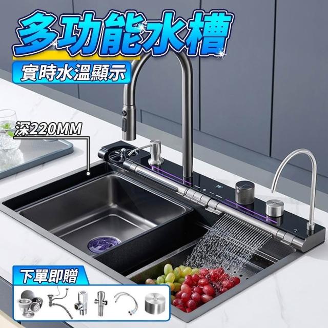 不銹鋼水槽 廚房洗菜盆(鋼琴按鍵飛雨瀑布水槽 廚房大單槽 洗菜盆 家用洗碗槽)