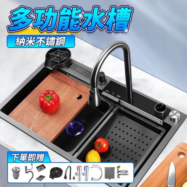 廚房水槽納米洗菜盆 廚房水槽 多功能水槽(大水槽 304不鏽鋼 加厚手工洗菜池 大單槽家用)