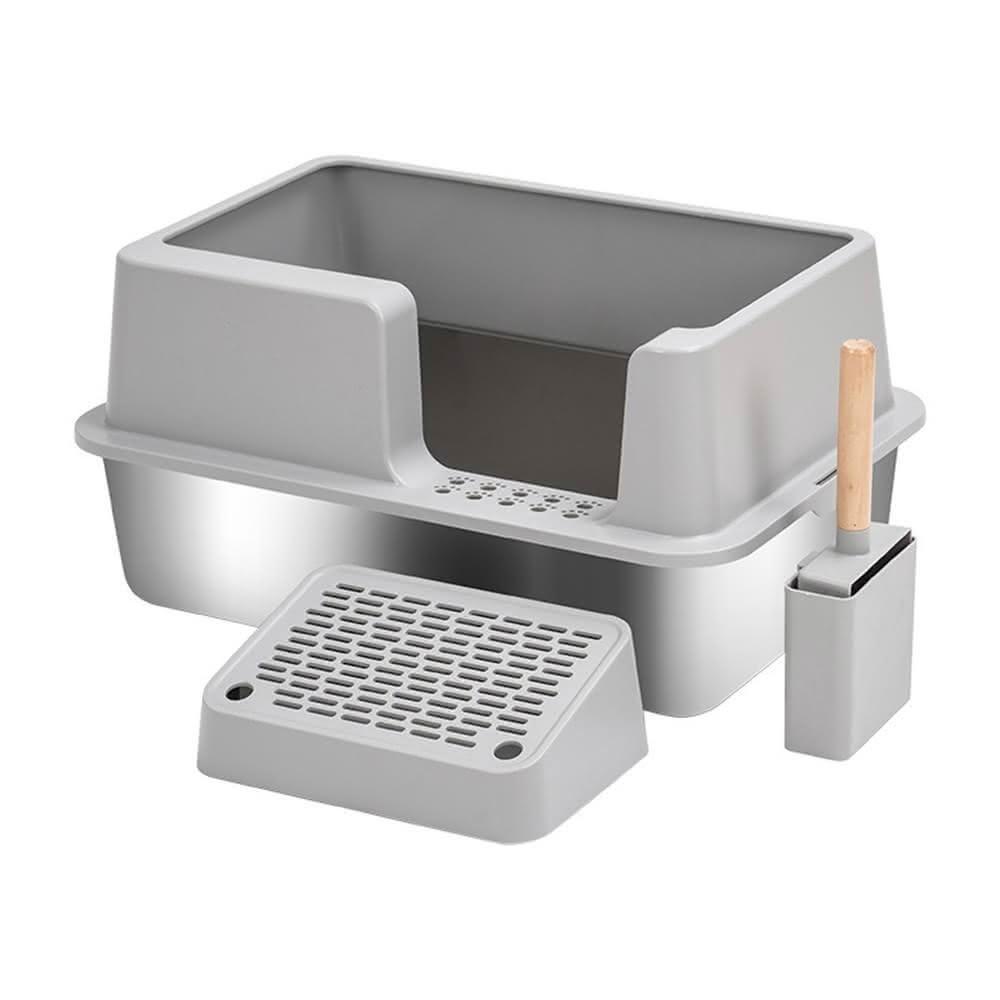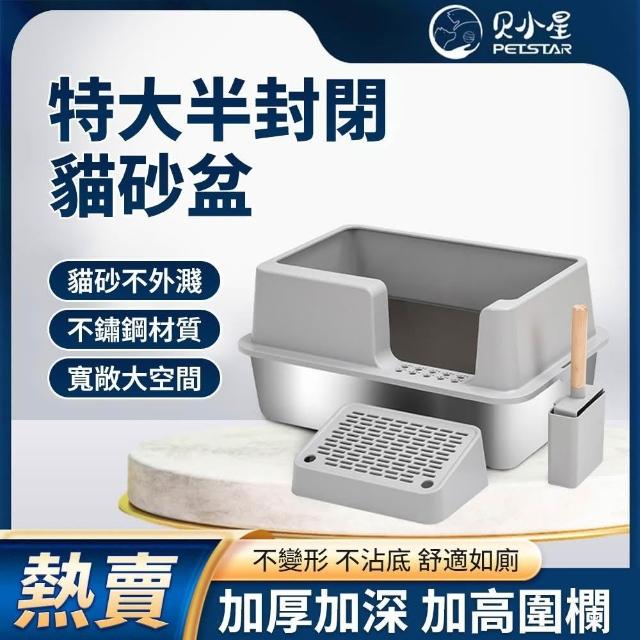 不銹鋼貓砂盆 加厚耐用 不粘底(易清洗 大空間防漏砂 半封閉貓砂盆)