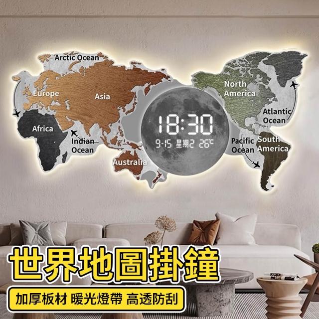 世界地圖 掛鐘 時鐘 沙發背景墻 裝飾畫 掛畫 客廳鐘表 LED電子時鐘 高級感辦公室
