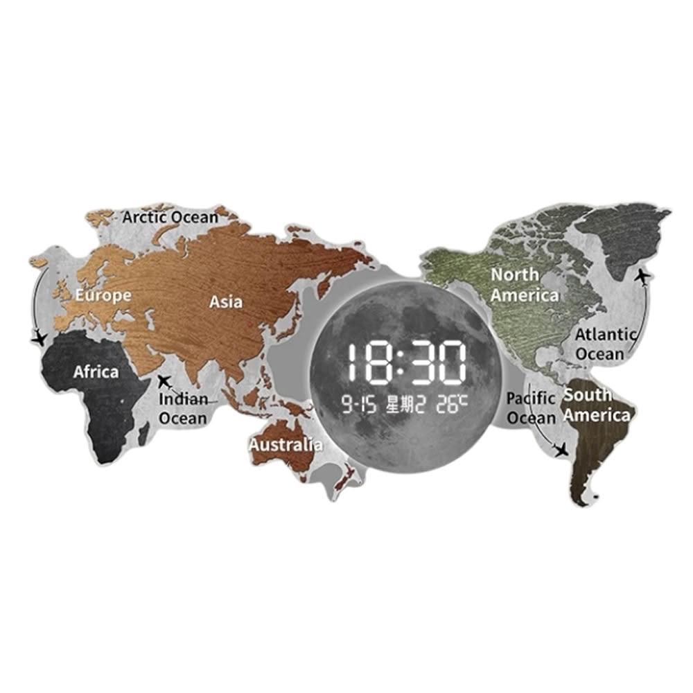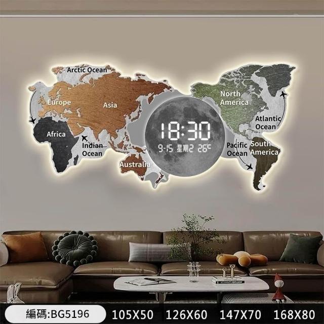 世界地圖 掛鐘 時鐘 沙發背景墻 裝飾畫 掛畫 客廳鐘表 LED電子時鐘 高級感辦公室