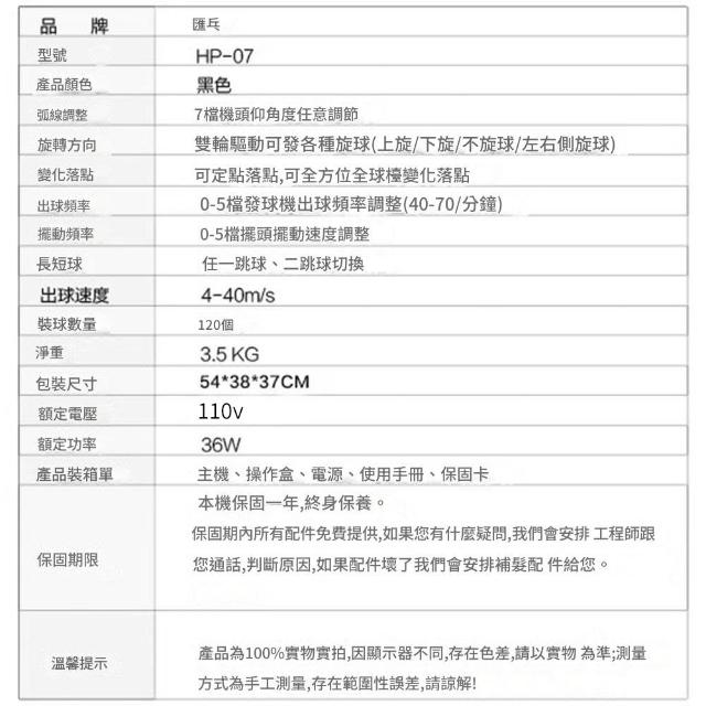 保固一年發球機 乒乓球 發球器 單人訓練器 HP-07 可調節角度 自動家用專業多旋轉