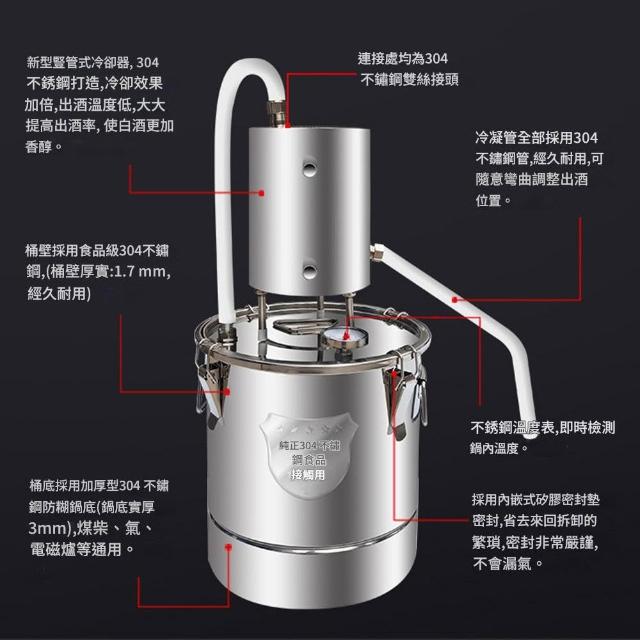 304不鏽鋼釀酒機 蒸酒器 蒸餾機 釀酒設備 小型家用家庭燒酒蒸餾器白酒純露釀酒設備 帶溫度計