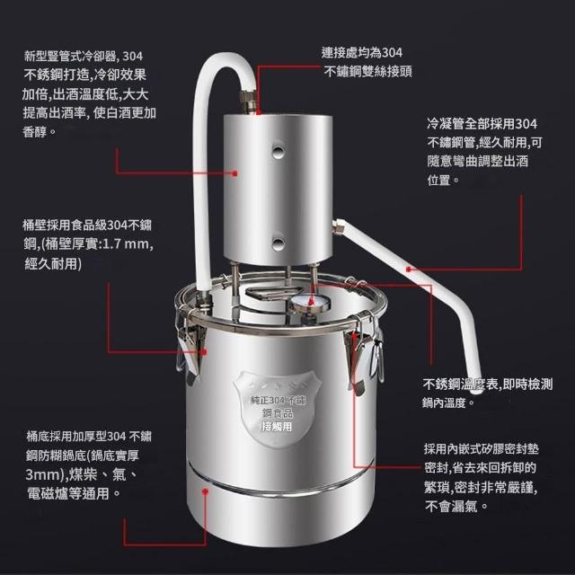 7折出清 304不鏽鋼釀酒機 蒸酒器 蒸餾機 釀酒設備 小型家用家庭燒酒蒸餾器白酒純露釀酒設備 帶溫度計