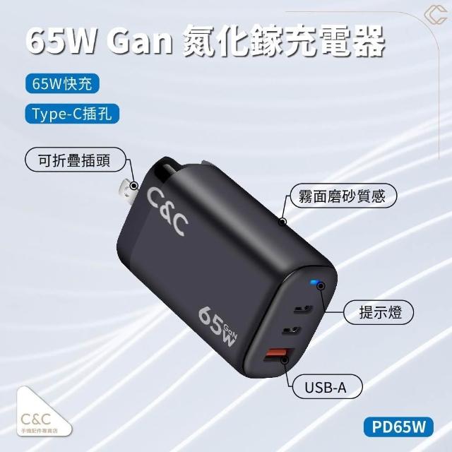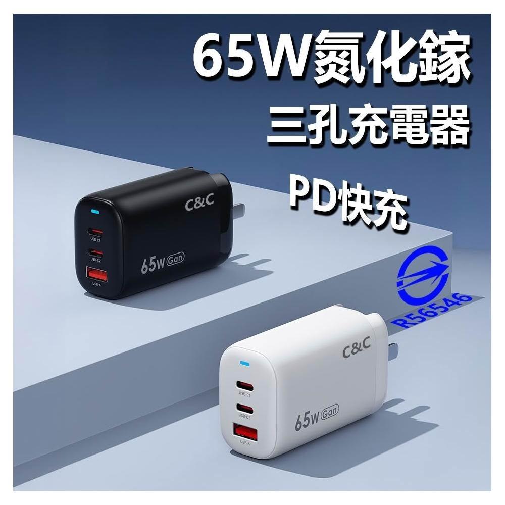 C&C65W氮化鎵充電頭(2Type-C+1USB)