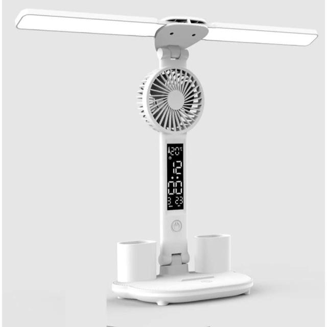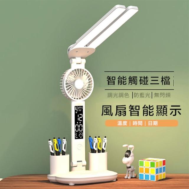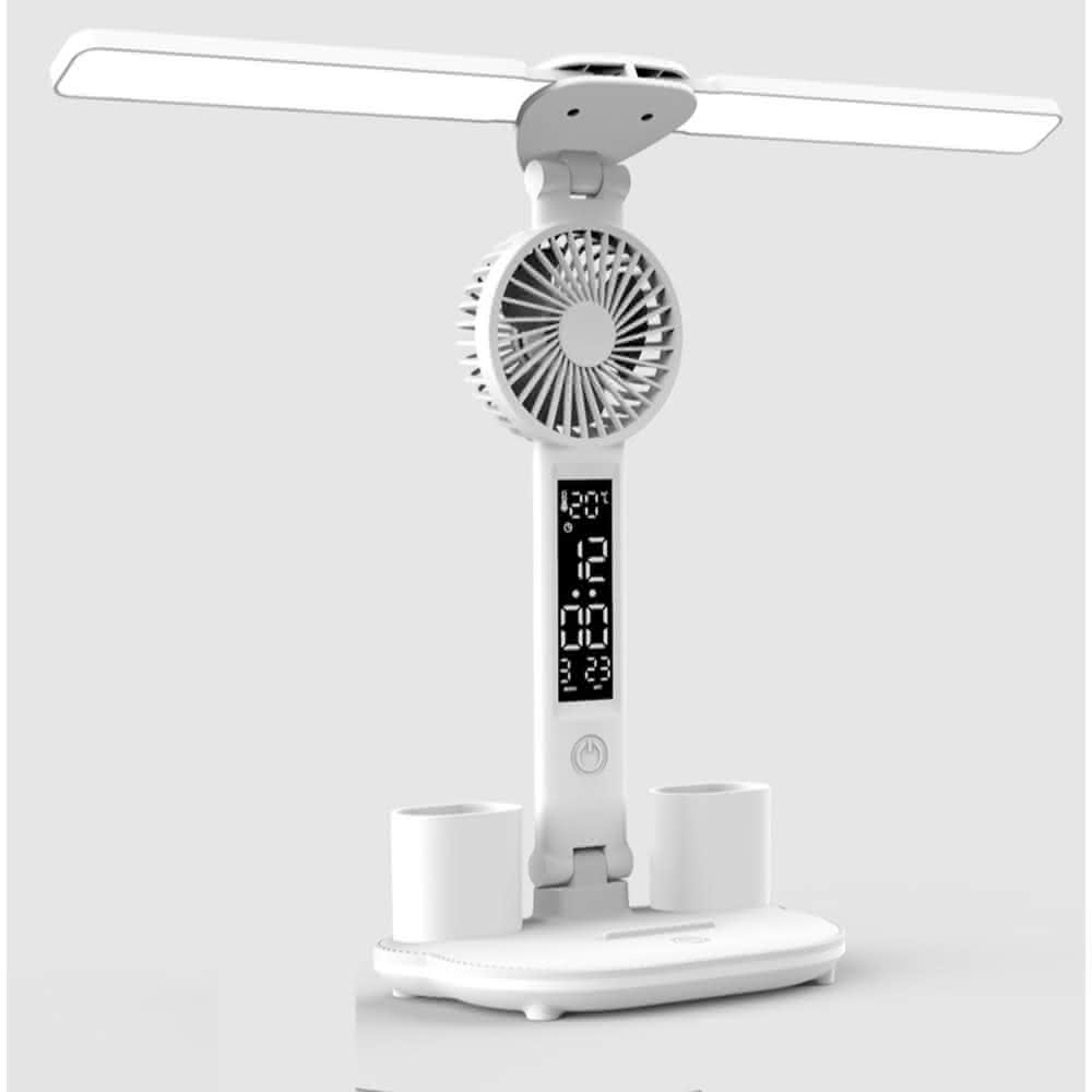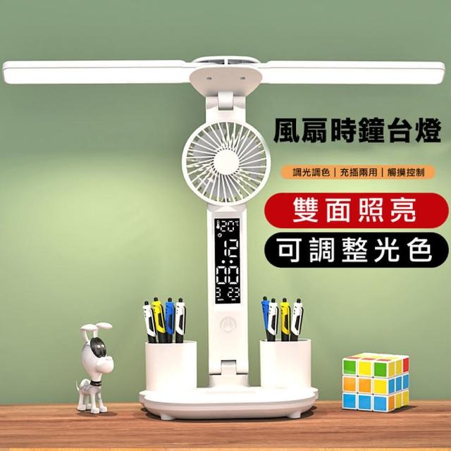 ULife 插電款多功能LED護眼檯燈 電風扇 時鐘 溫度計(書桌燈 閱讀燈 usb風扇 時鐘 溫度計)