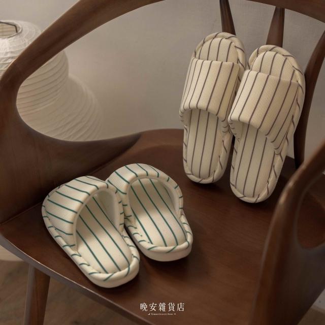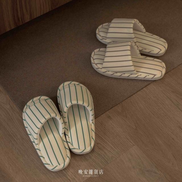 晚安雜貨店夏日室內韓系細條紋室內拖鞋|亞麻拖鞋 厚棉拖鞋 居家室內拖 wanan/☾…
