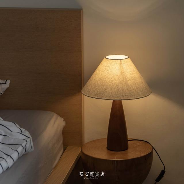 晚安雜貨店侘寂風實木復古檯燈 三色燈光 中古風檯燈 氛圍感燈具 小夜燈 床頭燈 wanan/☾…