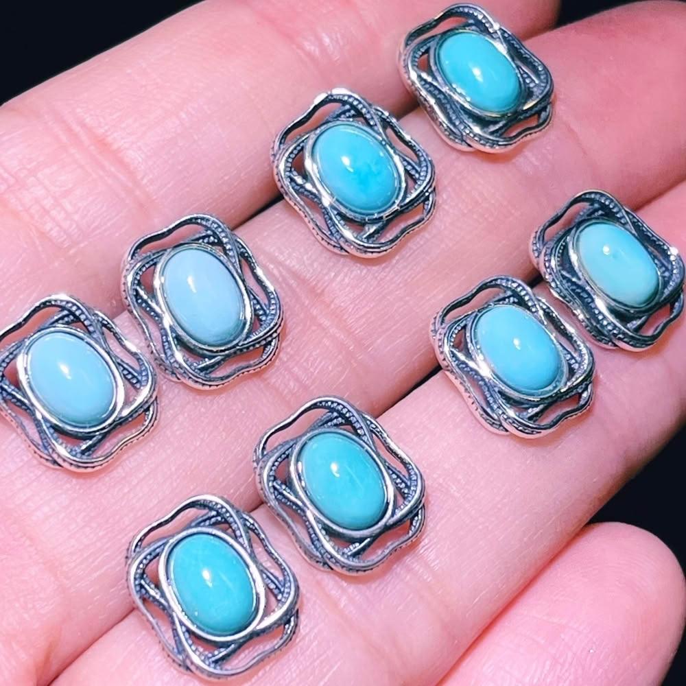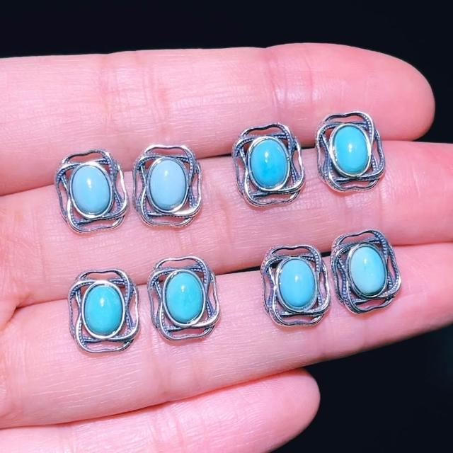⟪心樂寶石⟫ 原礦綠松石 土耳其石 耳飾 耳釘 耳勾 925銀 幸運 好運 提升自信和勇氣