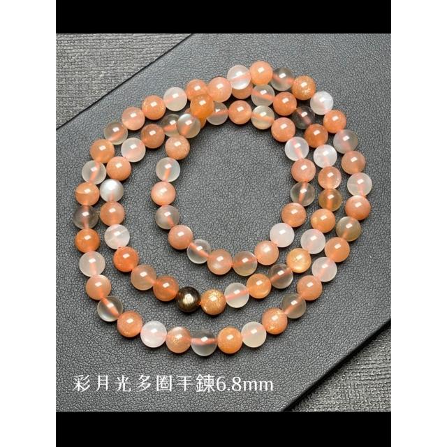 ⟪心樂寶石⟫ 6.8mm 彩月光手鍊 水晶飾品 女生配飾 月光石手串 三圈手鍊 增強創造力和自信心