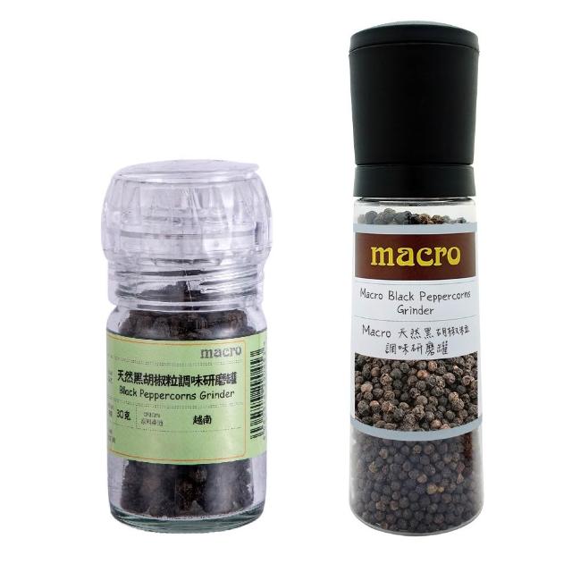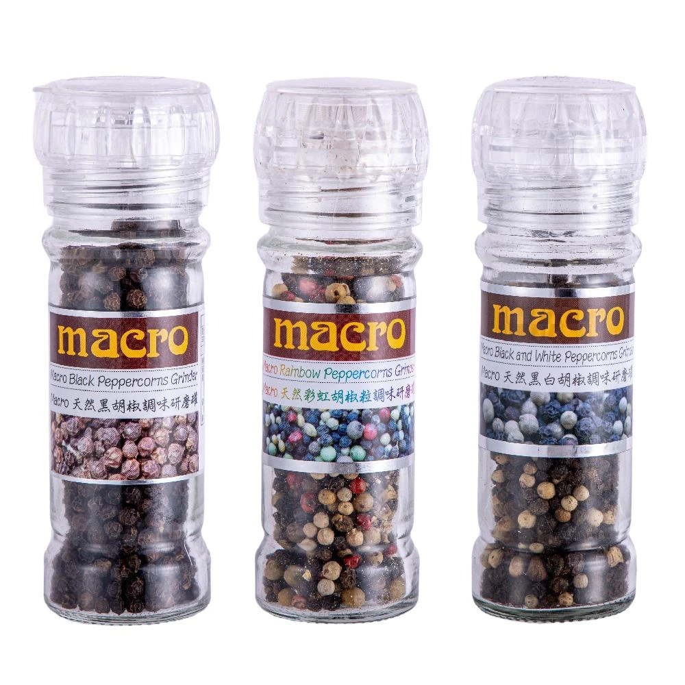 Macro天然胡椒粒調味研磨罐 (黑胡椒/黑白胡椒/彩虹胡椒)