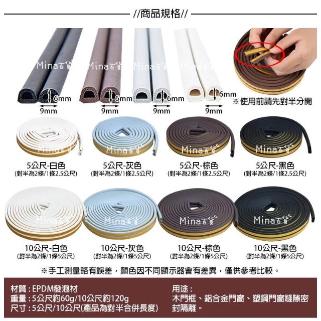 門窗密封條 隔音條 窗戶防風保暖 隔門縫 5公尺/10公尺(mina百貨)【F0405】