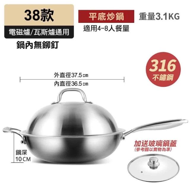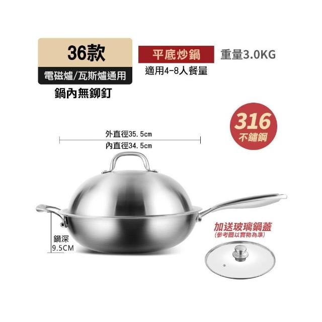 德國工藝316不銹鋼無塗層平底炒鍋36款