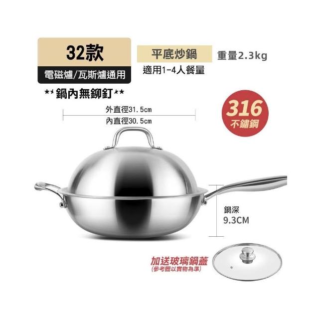 德國工藝316不銹鋼無塗層平底炒鍋32款