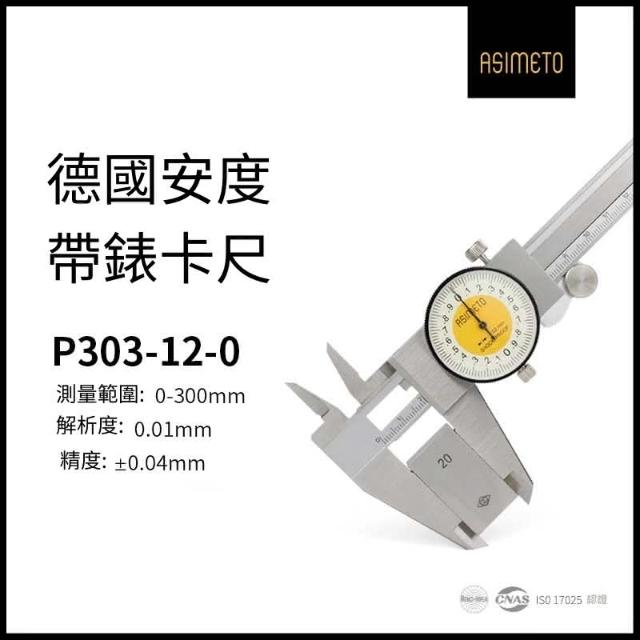 ASIMETO德國卡安度附錶卡尺0-300mm型號P303-12-0解析度0.01(卡尺附錶卡尺帶錶卡尺錶式卡尺)
