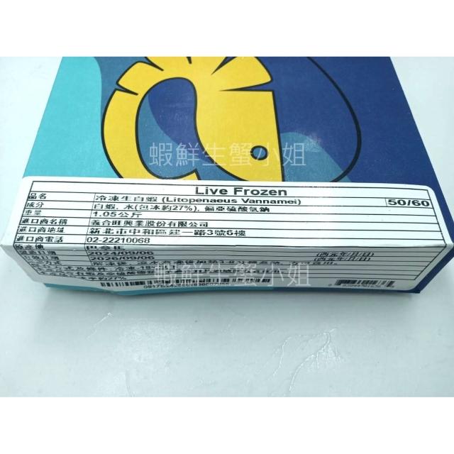 蝦鮮生蟹小姐活凍白蝦 50/60 一盒約40-50隻蝦 1.05Kg
