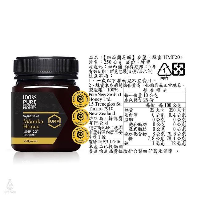 紐西蘭恩賜 麥蘆卡蜂蜜 UMF20+ 250g 2入組 MGO826+ (2029.04) 麥盧卡