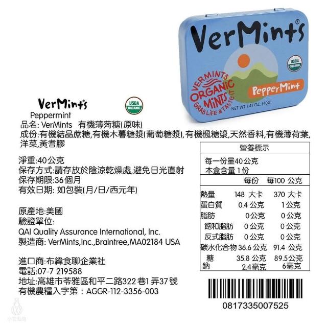 美國 Organic VerMints 有機薄荷糖40g-任選 (清口糖/無麩質/素食/低卡零食/糖果)