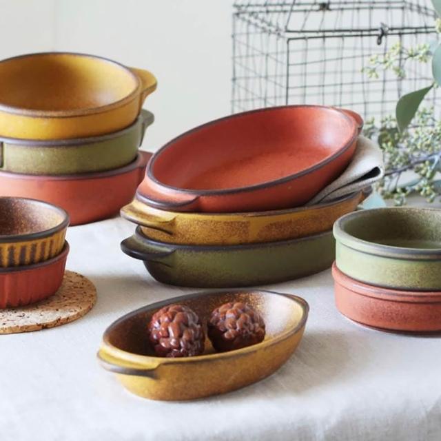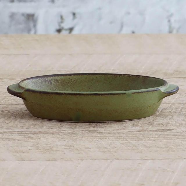 美濃燒昭和製陶 橢圓雙耳焗烤盤 23.5cm (艾草綠;陶瓷烤盤/燉飯碗/千層麵烤盤/日式餐具)