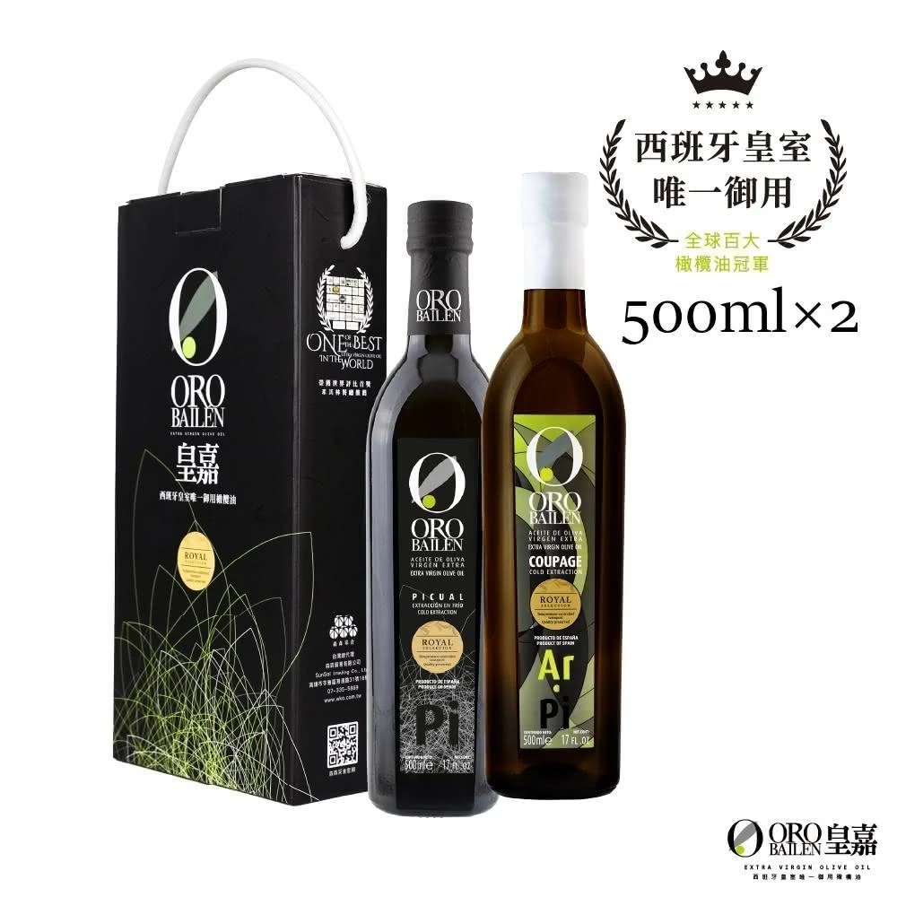 Oro Bailen 皇嘉皇室御用雙入經典提盒組 特級冷壓初榨橄欖油500mlx2入 (禮盒/伴手禮/入厝禮/企業採購)