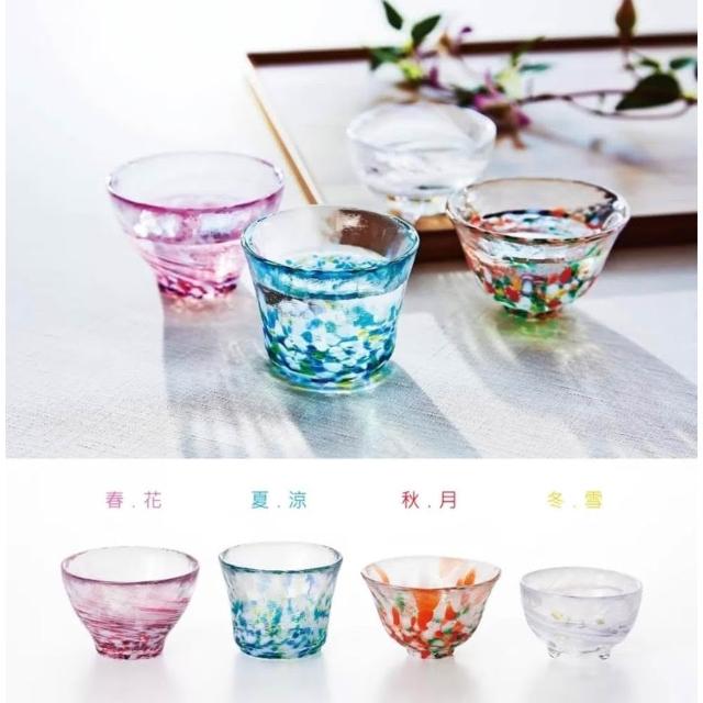 ADERIA日本津輕 手作四季清酒杯禮盒組 4入/組-含木盒 (琉璃酒杯/企業採購/商務禮品/入厝禮)