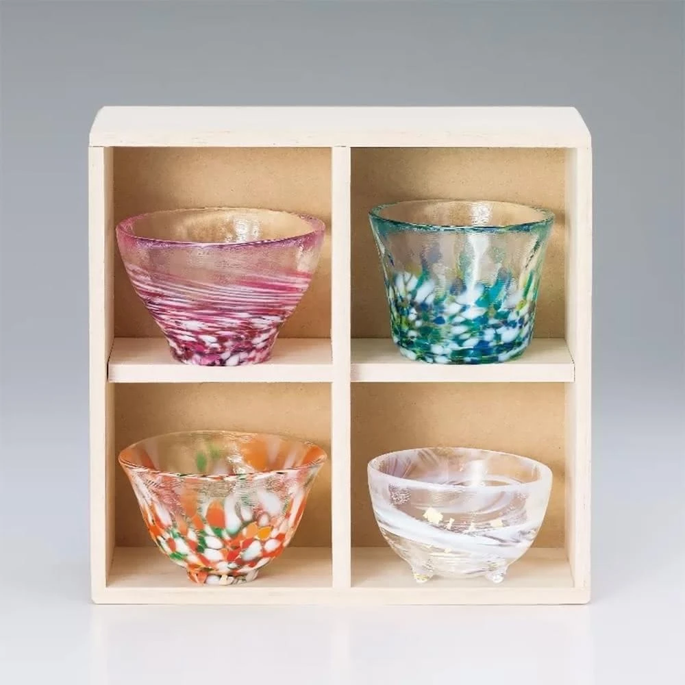 ADERIA日本津輕 手作四季清酒杯禮盒組 4入/組-含木盒 (琉璃酒杯/企業採購/商務禮品/入厝禮)