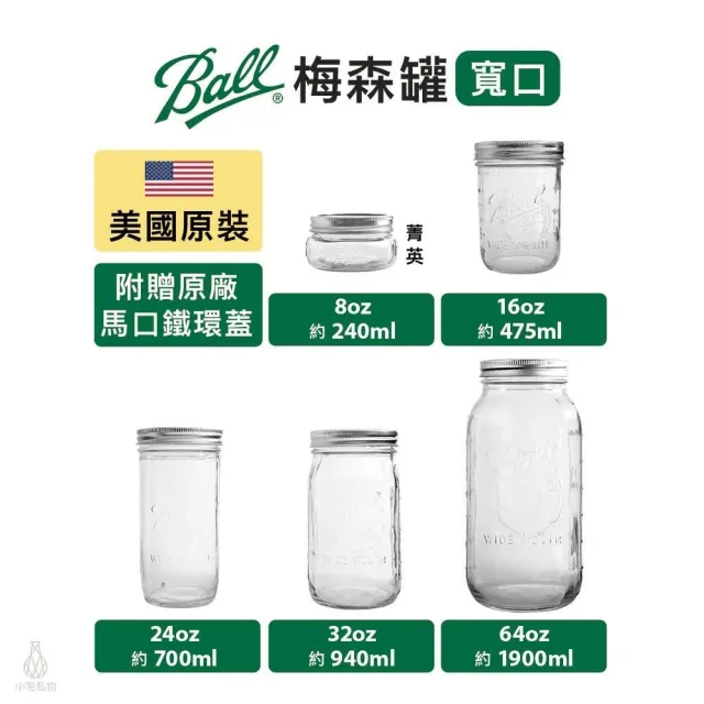 Ball 梅森玻璃梅森罐-寬口系列 (密封罐/儲物罐/梅森杯/果醬罐/飲料杯/梅酒罐/收納罐/醃漬罐)