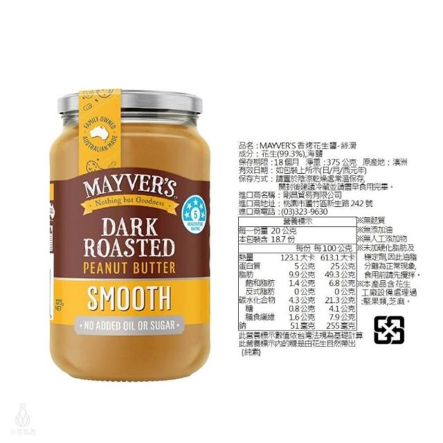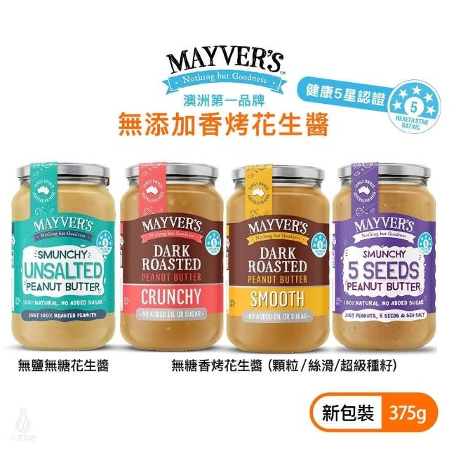 澳洲 Mayvers 香烤無糖花生醬375g (顆粒/絲滑/無鹽/超級種籽;純素/PEANUT/無麩質)