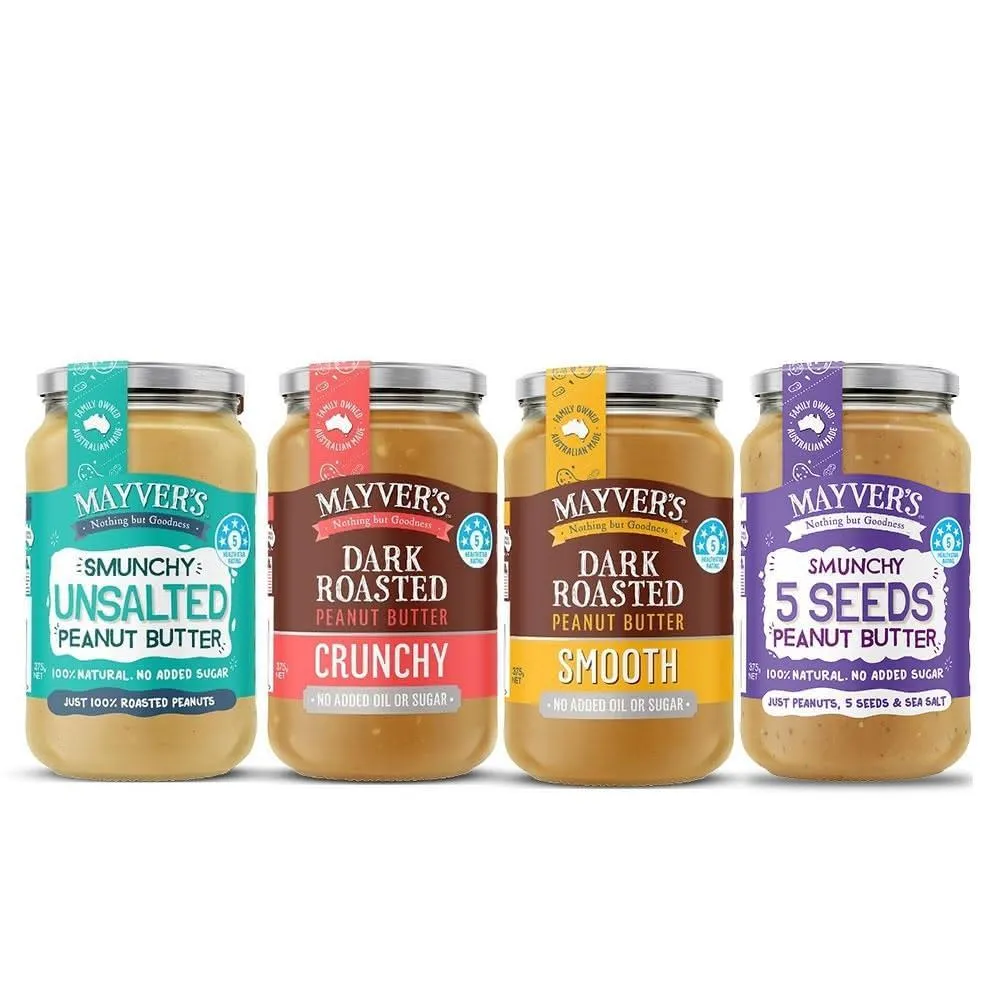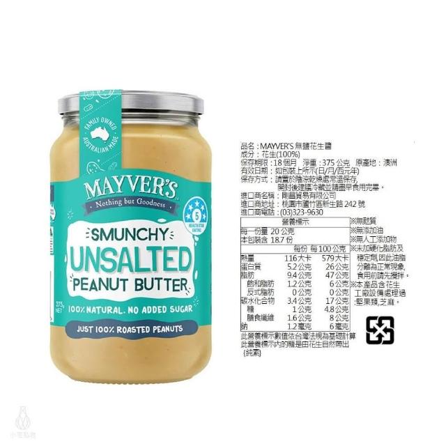 澳洲 Mayvers 香烤無糖花生醬375g (顆粒/絲滑/無鹽/超級種籽;純素/PEANUT/無麩質)