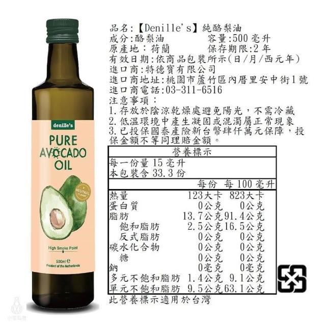 denille’s picks丹尼爾 酪梨油 250ml/500ml (初榨酪梨油/烹調酪梨油;冷壓酪梨油/全素)
