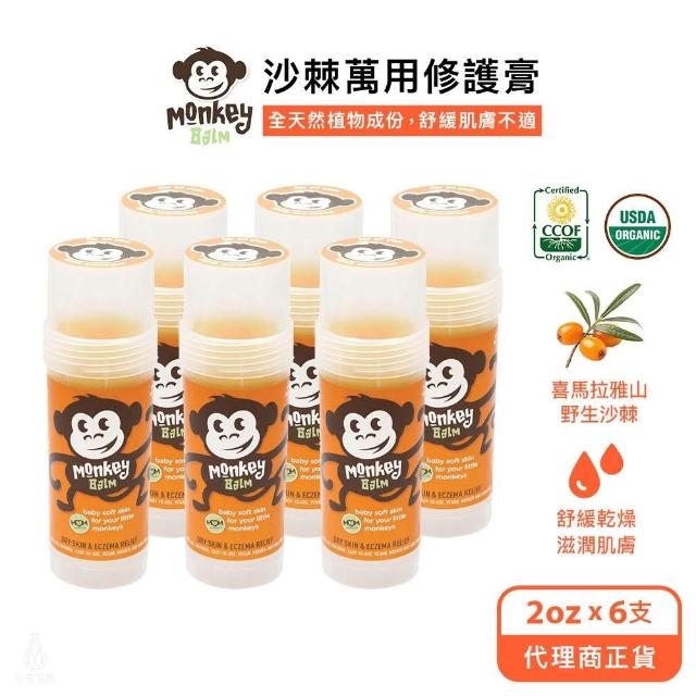MonkeyBalm猴子棒 2oz-6入組 (沙棘萬用修護膏/Monkey棒/屁屁膏/USDA認證/乾癢修復膏)