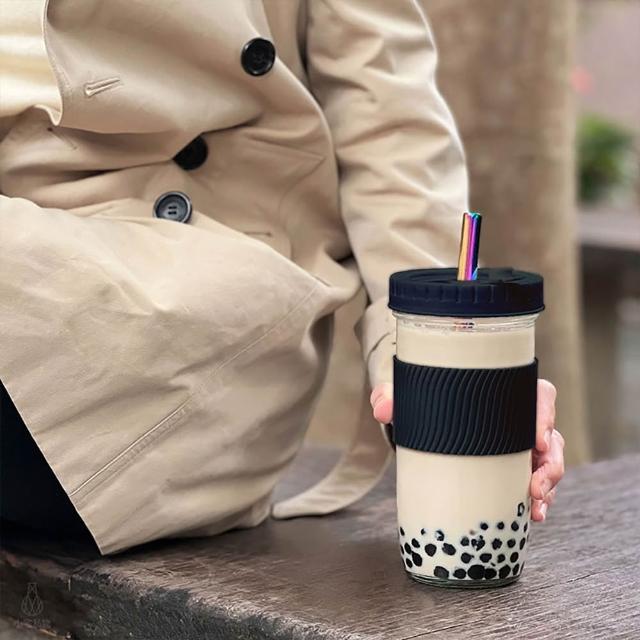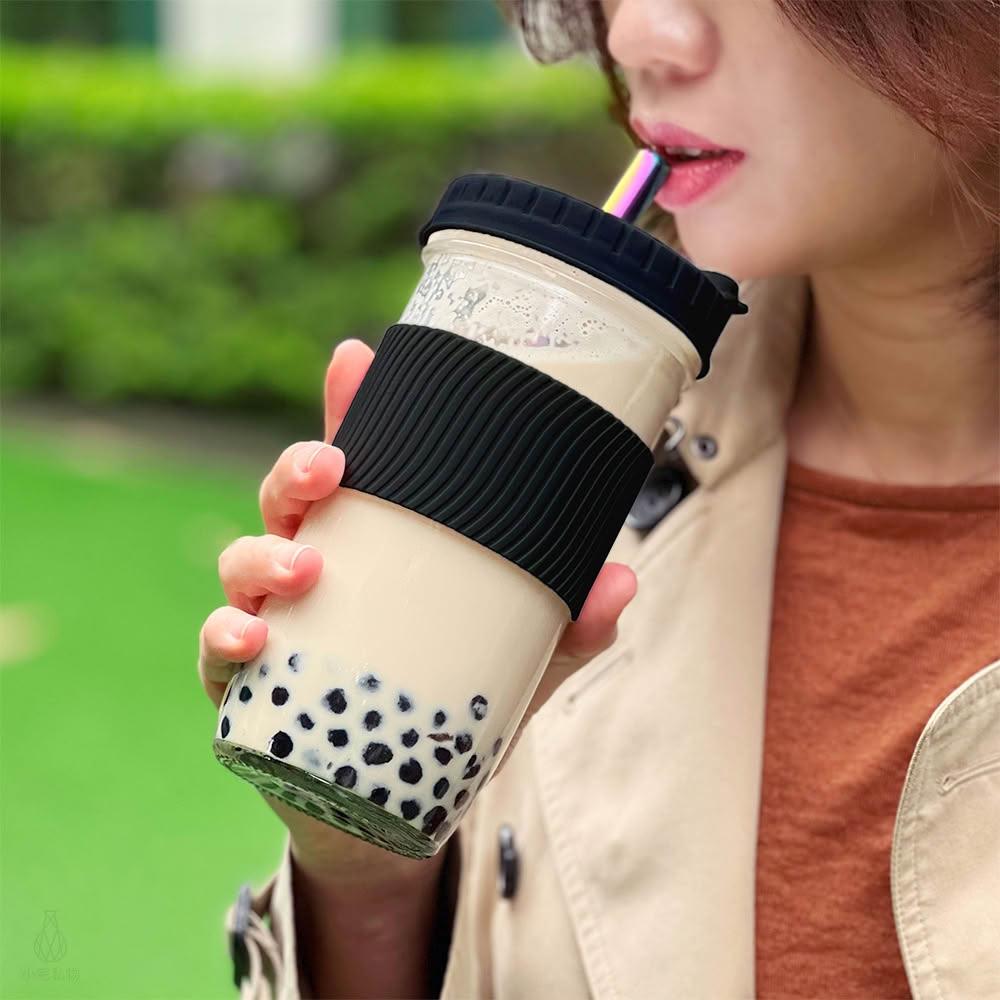 防滑隔熱飲料杯 700ml-黑色含吸管 (環保杯/珍奶杯/玻璃杯/隨行杯/手搖杯/梅森罐/梅森杯)