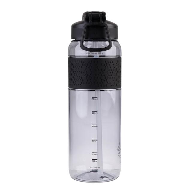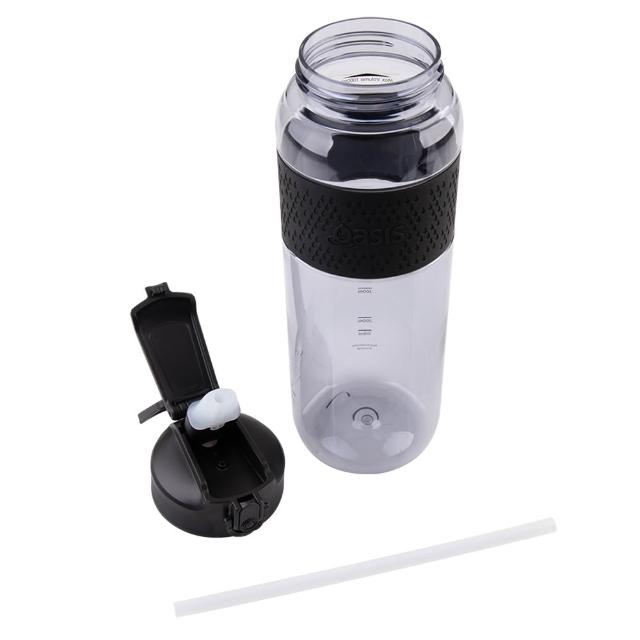 Oasis Tritan 彈蓋吸管運動水瓶 1000ml (清亮黑;水壺/水瓶/健身水壺/運動水壺)