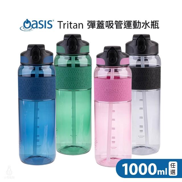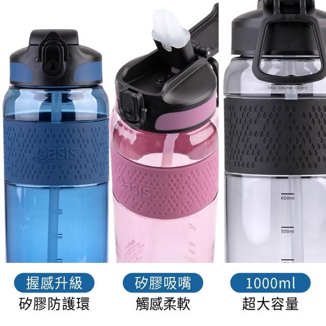 Oasis Tritan 彈蓋吸管運動水瓶 1000ml (海洋藍/漿果粉/森林綠/清亮黑;水壺/健身水壺/運動水壺)
