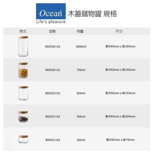 Ocean木蓋儲物罐650ml -6入組 (收納罐/玻璃罐/咖啡罐/保鮮罐)