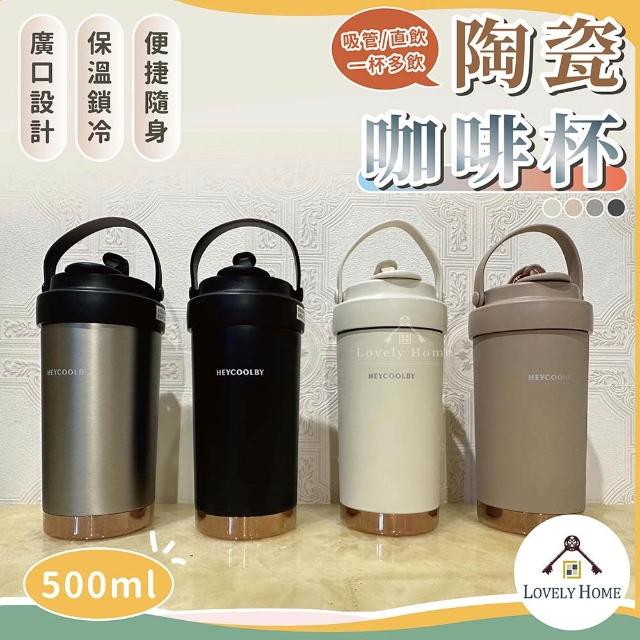 可愛小舖 | 陶瓷咖啡杯 咖啡杯 隨行杯 陶瓷杯 保溫杯 吸管杯 陶瓷保溫杯 陶瓷 500ML sc4523