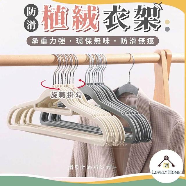 可愛小舖 | 植絨衣架10入 衣架 無痕衣架 防滑衣架 植絨衣架 曬衣架 防滑無痕 成人衣架 sc4529