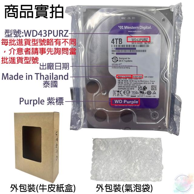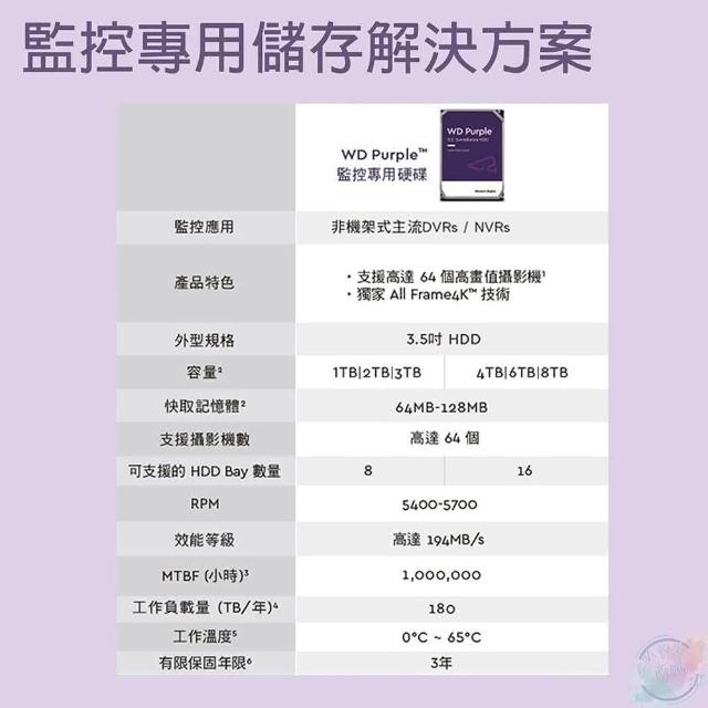 WD 威騰Purple 紫標 4TB 3.5吋監控碟/儲存裝置(3年保固)(原廠公司貨)