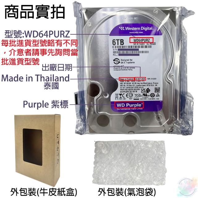 WD 威騰Purple 紫標 6TB 3.5吋監控碟/儲存裝置(3年保固)(原廠公司貨)