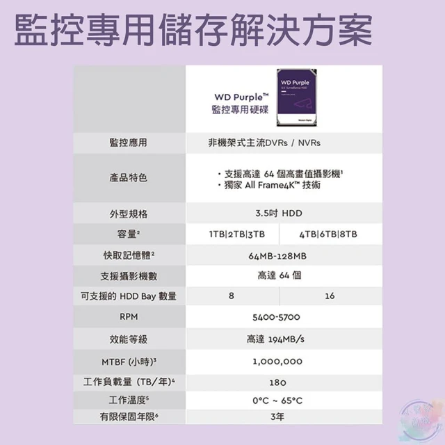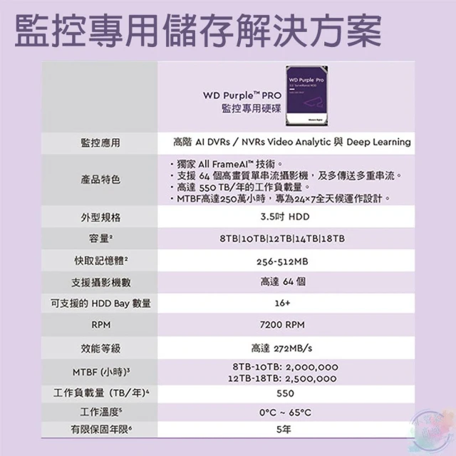 WD 威騰Purple PRO 【紫標】 8TB(3年保/5年保) 3.5吋監控碟/儲存裝置(原廠公司貨)