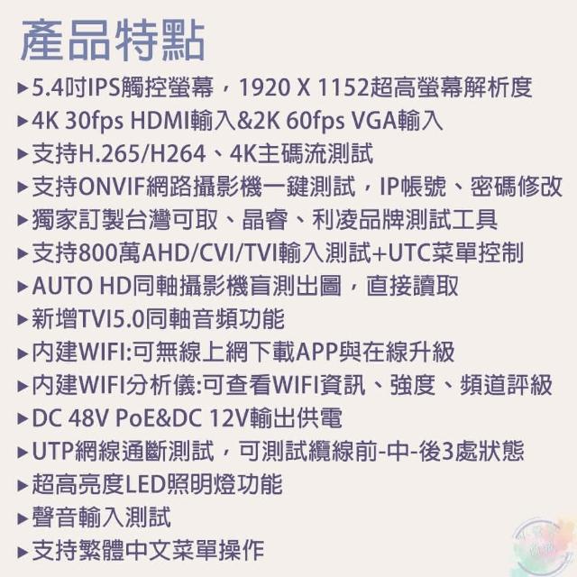 5.4吋五合一網路綜合型測試工程寶 5104P(5100P)(800萬/4K/監視器測試工程寶/工程測試器)