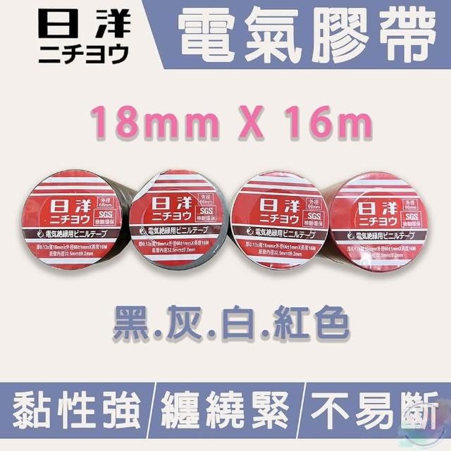 日洋-電氣膠帶18mmX16M-黑灰白紅(火布/電器膠布/PVC絕緣膠帶/10捲1個)