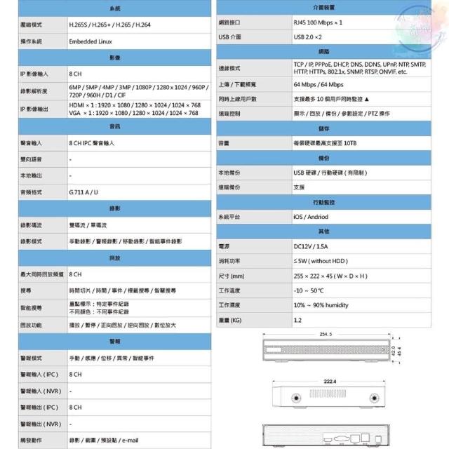 HI SHARP 昇銳電子8路600萬 NVR網路錄影主機 HS-NK831F(8CH 6MP)(不含硬碟)