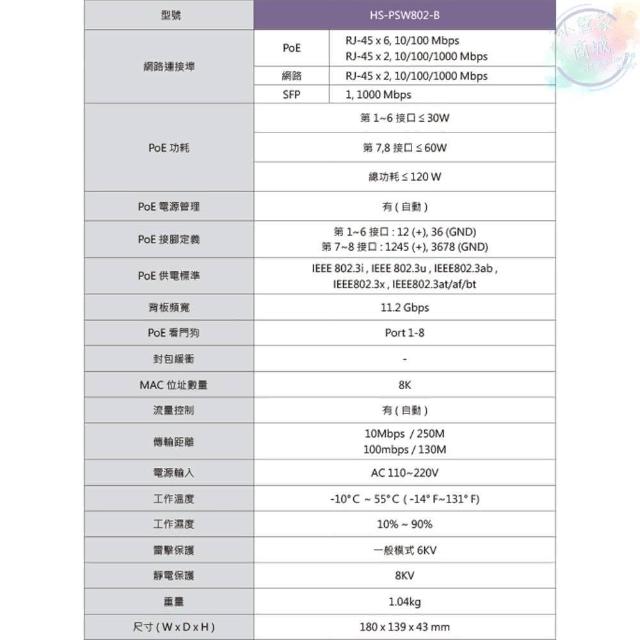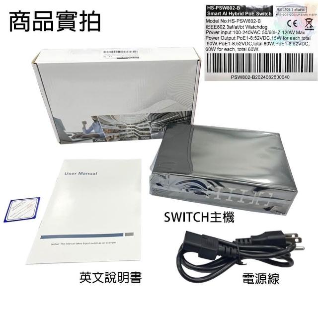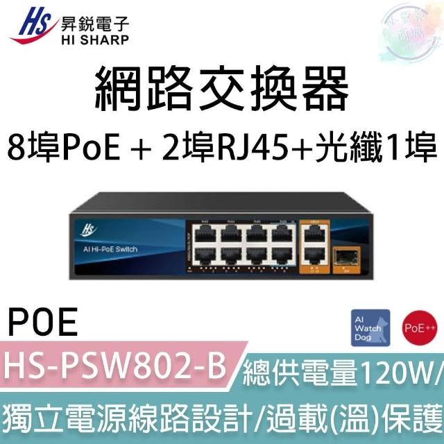 HI SHARP 昇銳電子8埠PoE+2埠RJ45+光纖1埠網路交換器HS-PSW802-B
