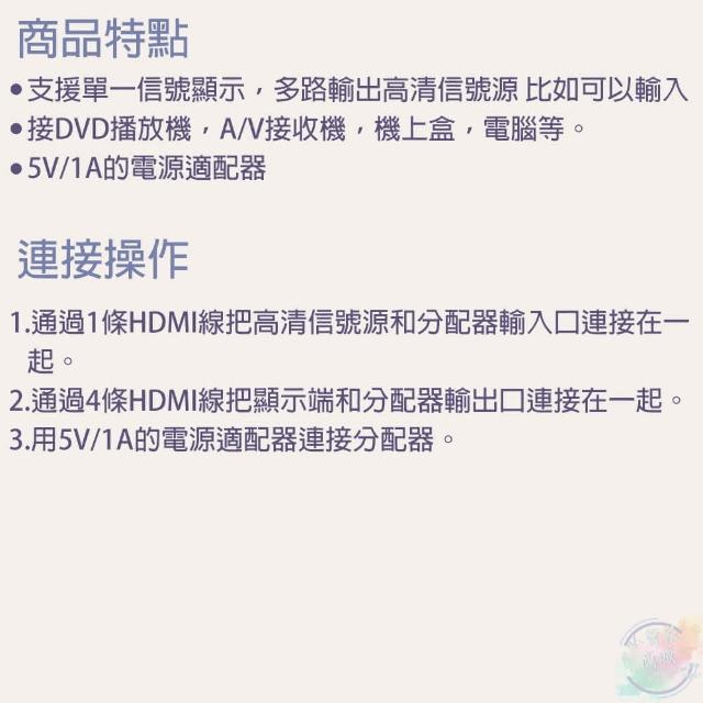 4K HDMI 1進4出分配器(切換器)