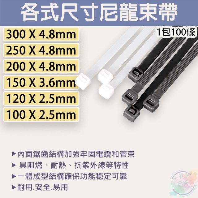 各式尺寸尼龍束帶300/250/200/150/120/100MM(白)(黑) 紮線帶/一包100PCS