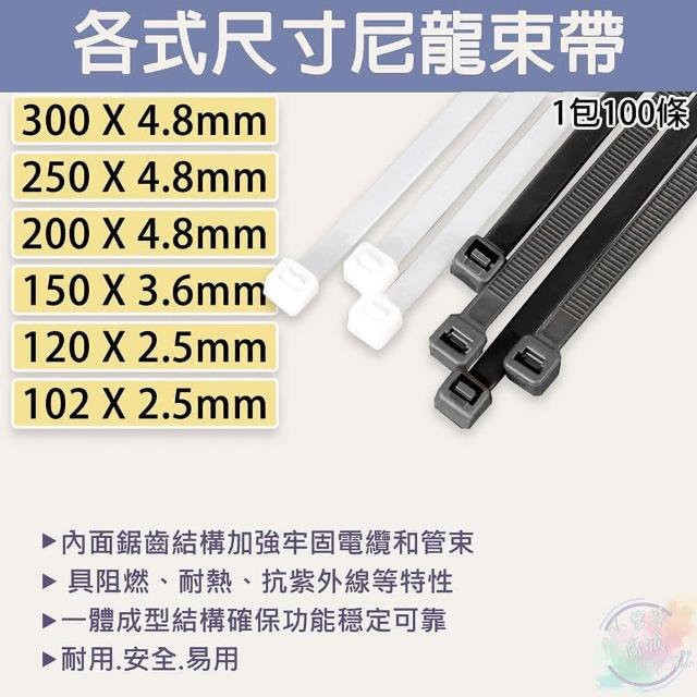 各式尺寸尼龍束帶300/250/200/150/120/100MM(白)(黑) 紮線帶/一包100PCS