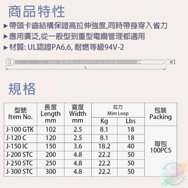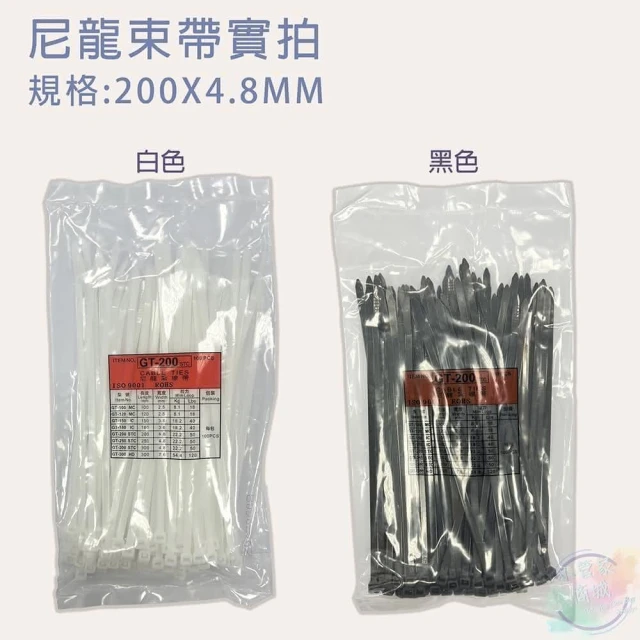 各式尺寸尼龍束帶300/250/200/150/120/100MM(白)(黑) 紮線帶/一包100PCS