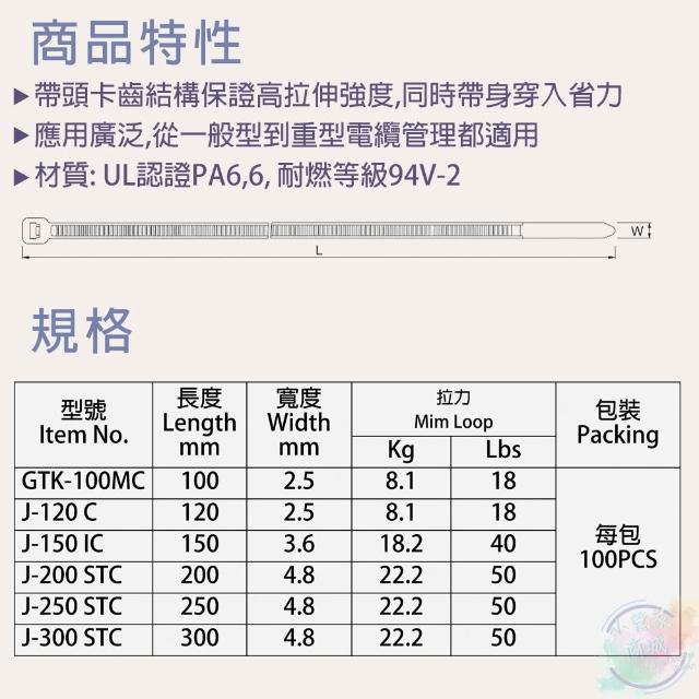 各式尺寸尼龍束帶300/250/200/150/120/100MM(白)(黑) 紮線帶/一包100PCS
