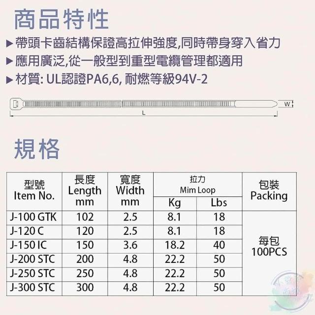 各式尺寸尼龍束帶300/250/200/150/120/100MM(白)(黑) 紮線帶/一包100PCS